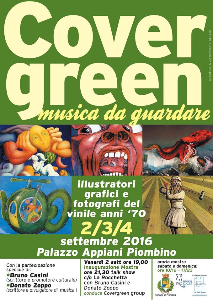 Venerdì 2 settembre a Piombino (LI), in apertura di ‘Cover Green’ – rassegna dedicata alle copertine dei 33 giri storici – avrò l’onore di condurre una conversazione sulla cover art insieme all’ottimo Bruni Casini.