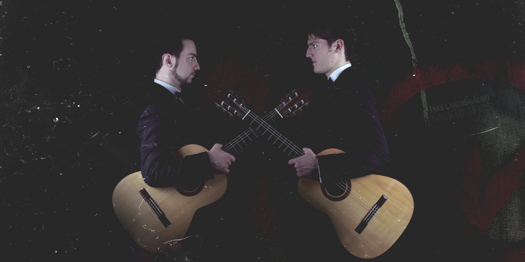 Duo chitarristico nato nel 2009 con la guida di Antonello Farulli all’Accademia “Incontri col Maestro” di Imola, il Duo Blanco Sinacori ha bruciato le tappe affermandosi subito a livello internazionale con un’attività concertistica che dall’Italia ha presto incontrato il pubblico di quattro continenti (imminente è il prossimo tour in Cina), grazie a una proposta musicale che fa tesoro della grande cultura musicale italiana col preciso intento di rivitalizzare, senza populismi né banalizzazioni, l’immagine irrigidita della chitarra classica nella musica d’oggi. Alessandro Blanco e Giuseppe Sinacori sono musicisti chiave nell’evoluzione di Almendra Music: il loro debutto Hacked Overtures del 2015 è diventato un titolo “storico” della label-laboratorio siciliana, lo stesso Blanco con Heptachord (in coppia col sassofonista Nicola Mogavero) nello scorso novembre ha offerto al pubblico e alla critica un altro punto di vista “almendrico”, tra world music, prog e musica contemporanea di scrittura. Il Duo Blanco Sinacori suona una coppia di chitarre gemelle (una mancina l’altra destra) appositamente costruite dal liutaio Vincenzo Candela. Se in Hacked Overtures la coppia si misurava con le sinfonie d’opera di Rossini e Bellini (ispirandosi alle trascrizioni di Mauro Giuliani ma ripartendo dalle partiture orchestrali originarie), questo primo “spin off”, Hacked Arias, estende la ricerca alle arie di Puccini, ancora una volta con un approccio rigoroso ma tutt’altro che museale. L’obiettivo del duo è legato al desiderio di far respirare nella contemporaneità – dunque per un pubblico che ha abitudini, rituali e consapevolezze diverse rispetto a quello dell’era pucciniana – celeberrime arie d’opera accanto a brani d’autore appositamente composti, attuali e funzionali al concept.
