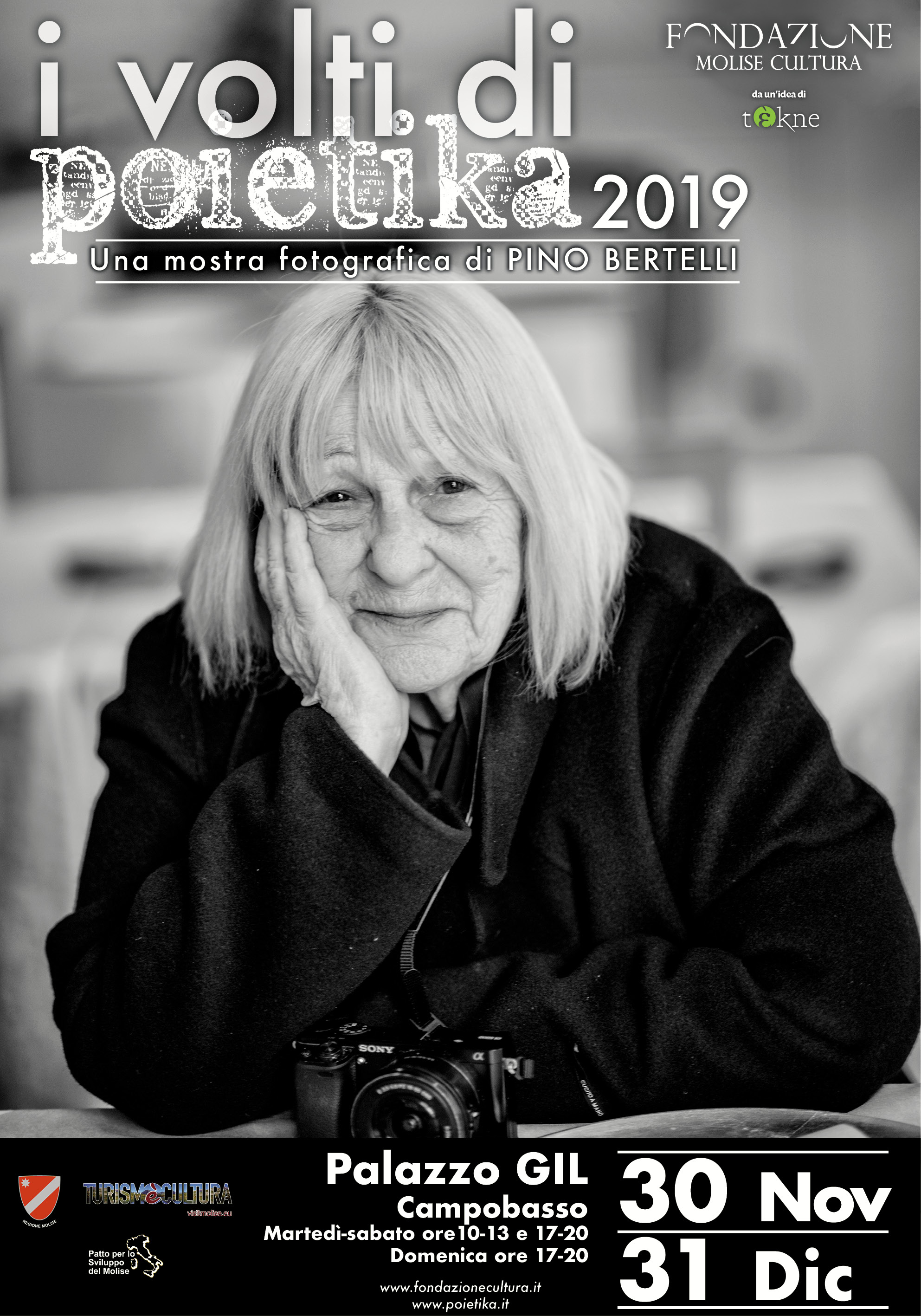 Sabato 30 novembre 2019 alle 17.00 nella sala espositiva del Palazzo GIL a Campobasso sarà inaugurata I volti di Poietika, la mostra fotografica di Pino Bertelli, composta dai ritratti che il grande fotografo toscano ha realizzato dall’8 al 16 aprile – durante la settimana di Poietika 2019 – al Teatro Savoia e nei luoghi più suggestivi e significativi di Campobasso. Oggetto delle foto di Bertelli, come da titolo della mostra, i volti di Poietika: non solo gli straordinari ospiti della rassegna diretta da Valentino Campo come Letizia Battaglia, Raul Zurita, Vandana Shiva e Wim Mertens, ma anche i cittadini, la gente comune, immortalata da Bertelli durante il suo soggiorno campobassano.
